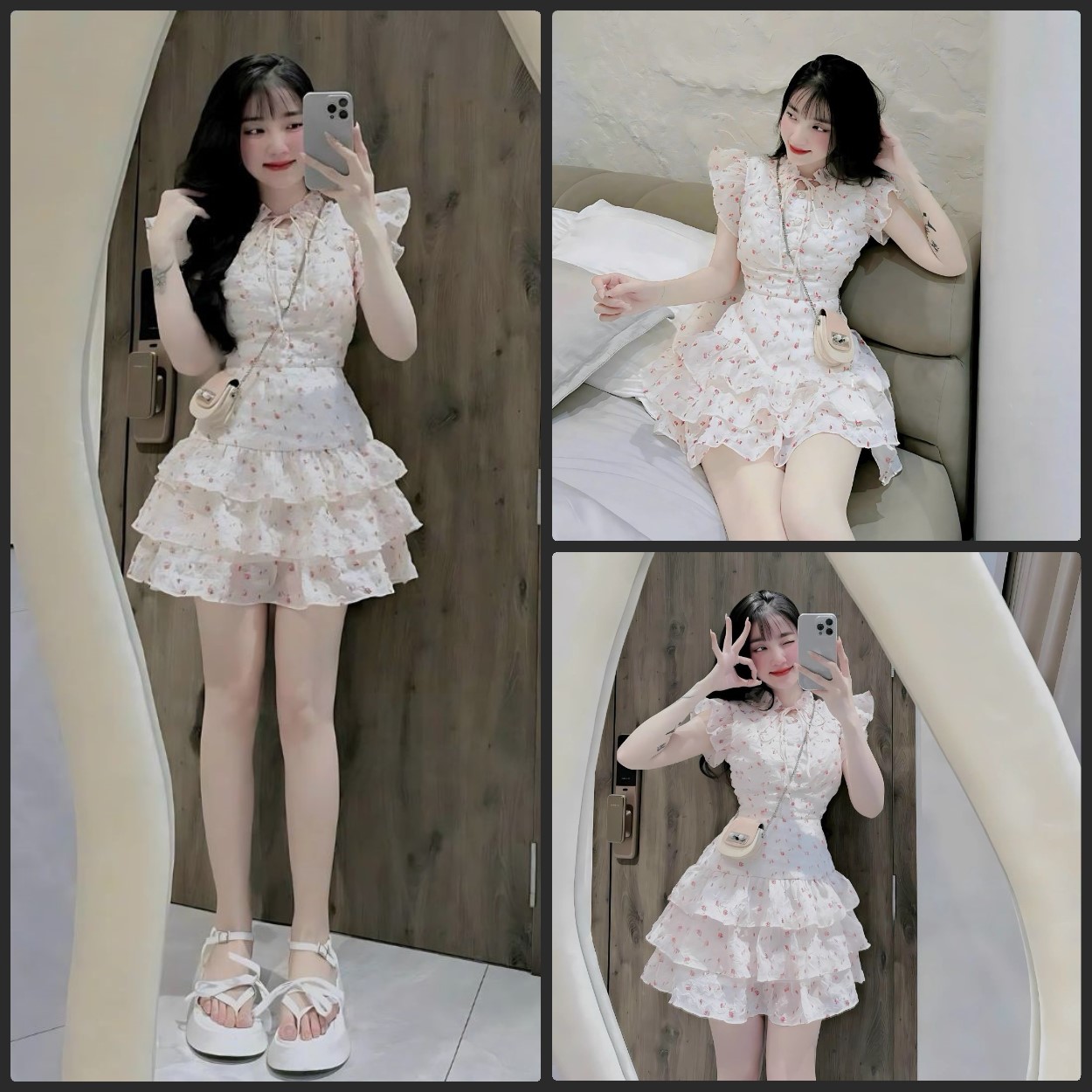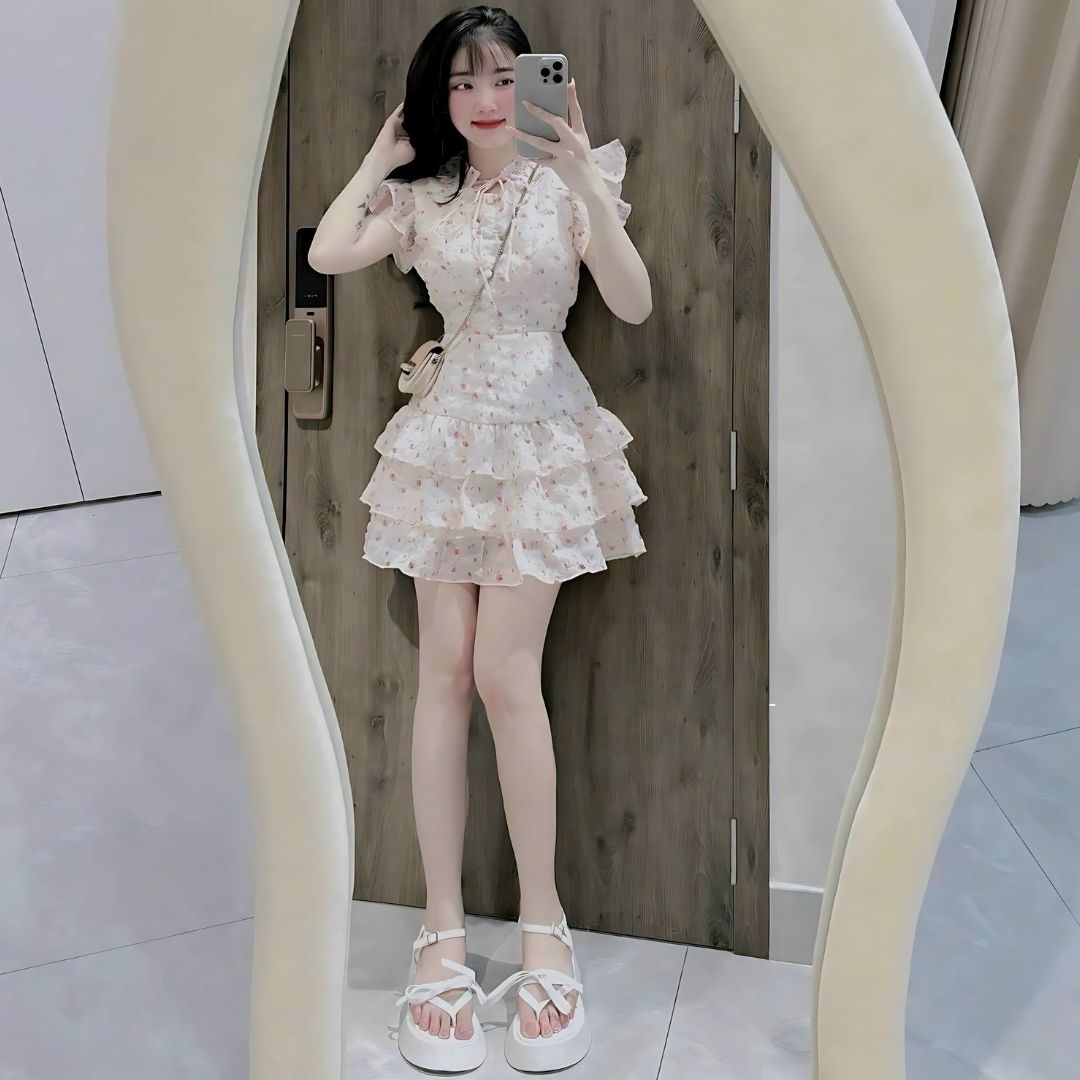 ✨ Chân váy xếp ly 3 tầng xoè nhẹ nhàng, giúp tạo hiệu ứng thướt tha, mềm mại khi di chuyển.