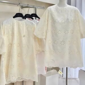 💎 Áo cổ tròn chất vải thô thêu mềm mại, mang đến vẻ đẹp sang trọng, tinh tế.